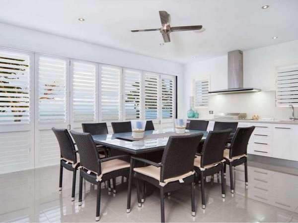 Internally the open plan layout takes great advantage of the ocean based breezes and of course that Coral Sea view. Functional in design, position and appointments, the entertainer kitchen is afforded by a huge patio featuring an outdoor bar/BBQ area and Venetian bi fold shutters.
