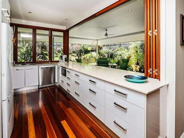 Much consideration was put into the layout of the property by local designer Tony Driscoll. It is raised above ground level for ventilation and has extensive use of casement windows and bifold doors to maximise cool breezes. The large roof space and roof turrets also maximise cool ventilation.
